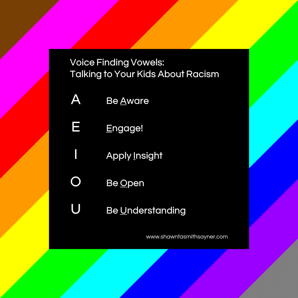 What’s the best way to talk to your kids about racism? It’s going to be different for every adult and every kid. The key is to just talk with them. Just start. Share what’s in your heart. Then sit back and listen. Let them ask you questions. Let them share. Give them a chance to blow you away. Because most kids will. Thank goodness they’re our future. Thank goodness we’re brave enough to help them face it.