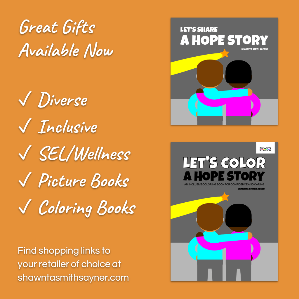 Let’s Color a Holiday Story is finally here! This means all of the Let’s Share series stories have matching companion coloring books! Check them out as you consider your gift-giving needs! Happy Holidays!